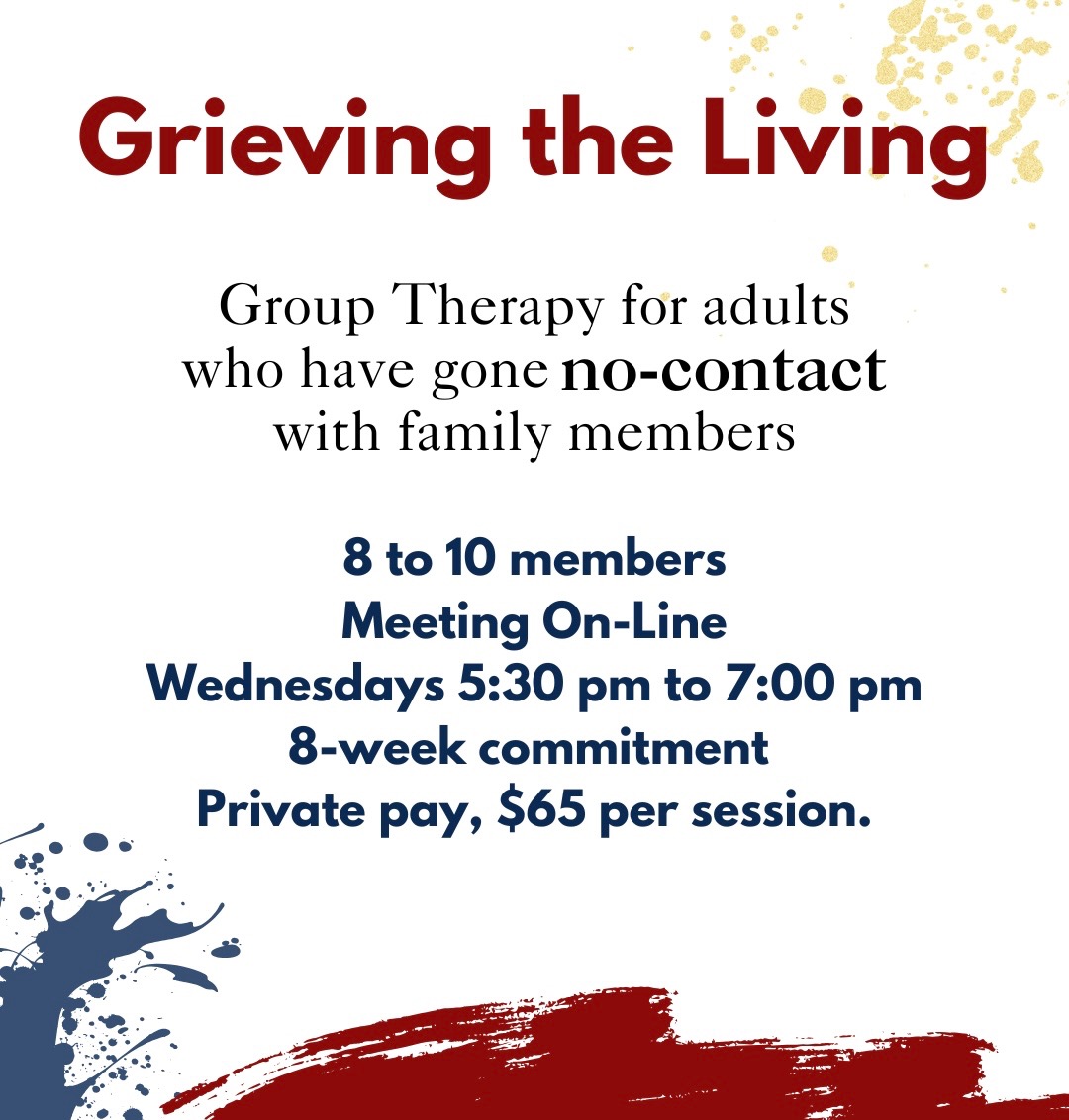 Grieving the Living Therapy Group is a trauma informed safe and supportive space to process emotions and connect with others who understand the journey of going no-contact with family members.
